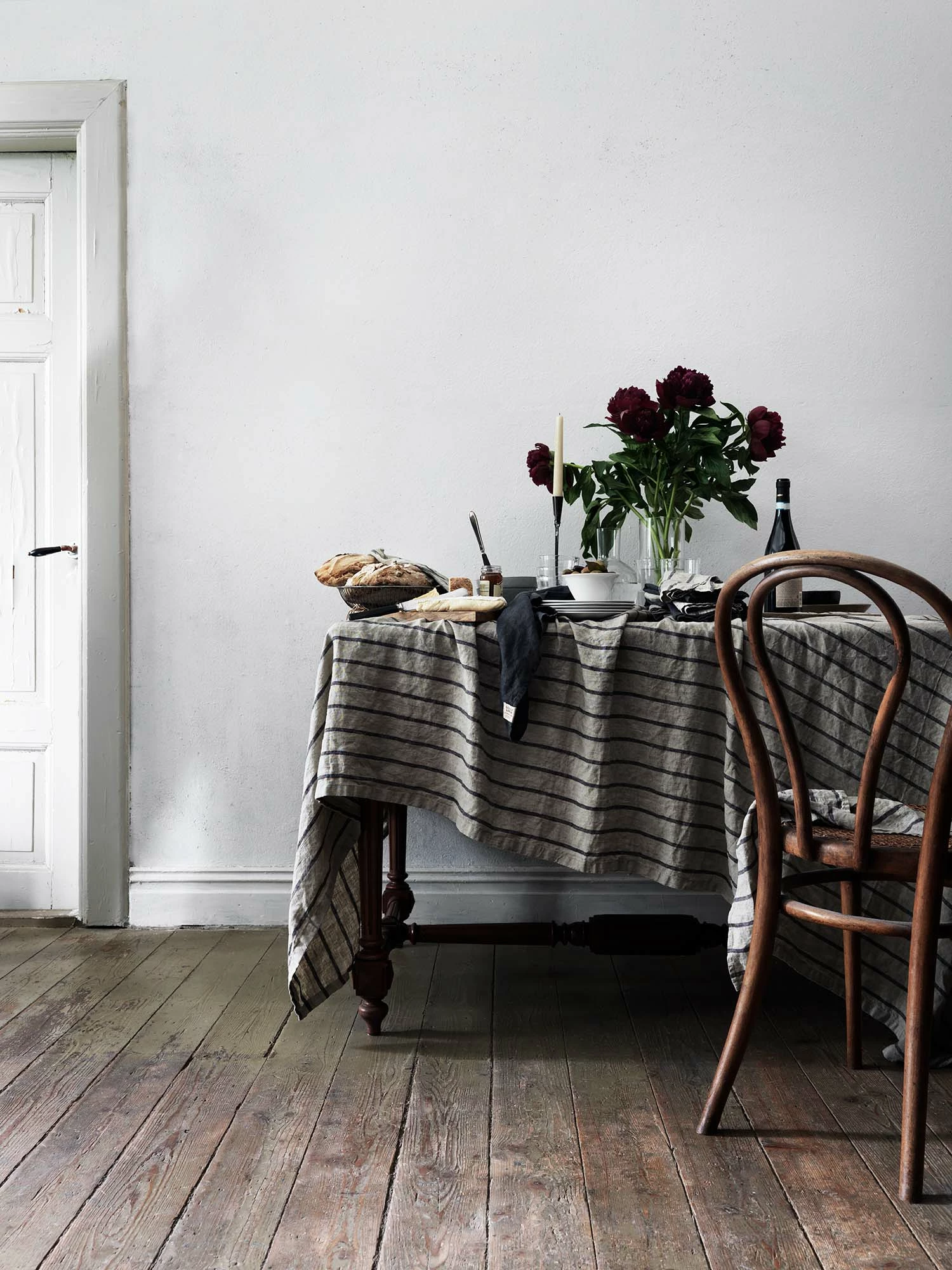 Lovely Linen Misty Tischdecke 145×250 Cm, Black Stripe