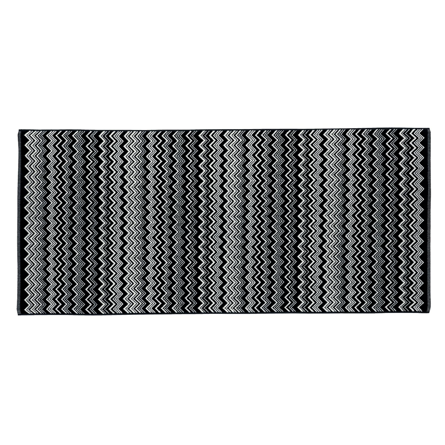 Keith 601 Badematte von Missoni im klassischen Schwarz-Weiß-Zickzack Muster. Die Kombination zwischen den nüchternen Farben und das heftigen Muster paßt in vielen Häusern und kann leicht mit dem Rest des Missoni Home Bereichs gemischt werden. Dicke weiche Baumwolle für besten Komfort und höchste Qualität. Eine Badematte von Missoni wird zuletzt sowohl in Form und Stil für eine lange Zeit.